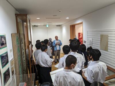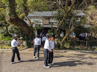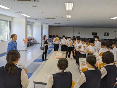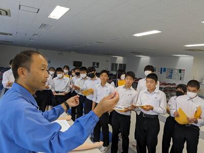 ポート事業」において、日向市内の史跡・名所(企業)を巡る学習