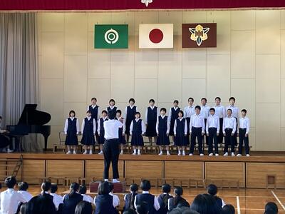 ろん、土谷教頭先生も音楽専門であり、全校練習や複数学年の練習に熱を入れて指導して頂きました。その結果、合唱の質が飛躍的に向上し、子どもたちの合唱への取組も変わってきたように感じます。この学習発表会では、まず、学年毎にに合唱を披露し、最後に全校生徒で合唱を披露しました。学年毎の合唱は、学年の個性が表れ、全校合唱では迫力のある素晴らしい合唱を披露することができました。