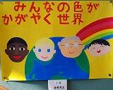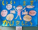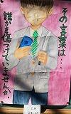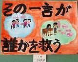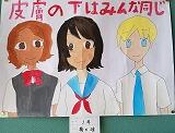 美々津中学校の階段の掲示板には、人権ポスターが展示されています。また、給食の放送では、県人権作文コンクールで