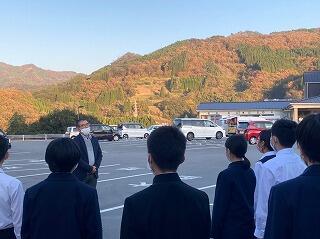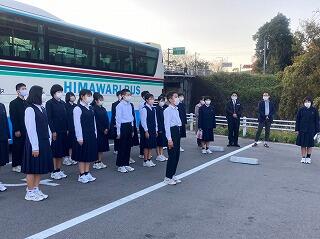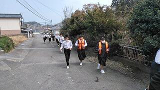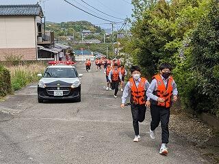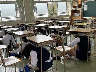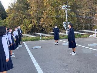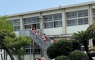 年間4回実施している避難訓練、本年度2回目の実施です。地震発生時、机の下に避難。ゆれがおさまってから第1避難所の「お食事処 千代」の空き地へ走って逃げます。その後、第2避難所の「JA日向美々津支店の駐車場」へ移動しました。防災士の黒木邦寛様、黒木茂紀様及び学校運営協議会副会長の寺町 晃様にお話を頂きました。全校生徒が真剣に取り組むことができました。
