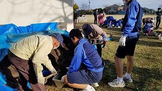 御指導のもと、生徒会執行部が中心となってボランティアを募り、最後の後片付けを行いました。資源として活用