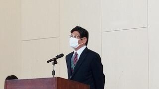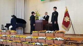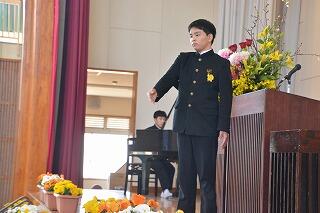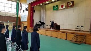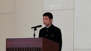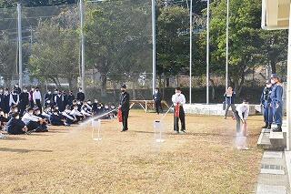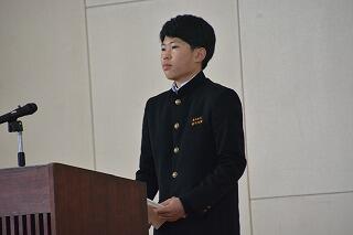大会に向けた決意表明があり、生徒代表激励の言葉を3年生の小林道夫さんが力強く送ってくれました。校長先生からは「勝ち負けにはこだわらず、精一杯力を発揮して」とは言いません。今まで一生懸命に練習してきたのだから自信を持って「勝ってこい」と心強いお言葉をいただきました。それぞれの部活動が精一杯力を発揮してくれることでしょう。
