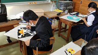 6月24日(金)先日行われた「美々津町並みスケッチ大会」の表彰を行いました。各学年から優秀賞が2名ずつ選ばれ、『美々津の歴史的町並みを守る会』より副賞として図書カードが送られました。