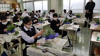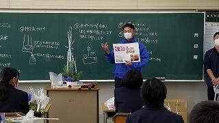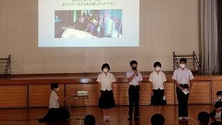 7月15日(金)6校時の推戴式の後、昨年度から取り組んでいる「やさしい言葉の花」の作成集会を行いました。1年生は初めてなので、生活委員会のメンバーが寸劇を交えて『明元素』とは何かを分かりやすく解説し、やさしい言葉の花の制作の手順を説明しました。本年度も、立派な花が咲きました。