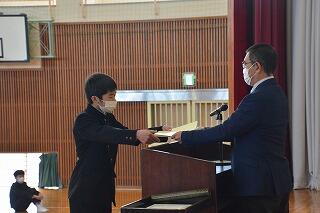 をされています。体育文化後援会長より感謝状の贈呈を行いました。