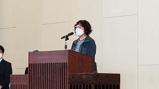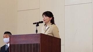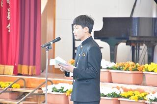 校長先生から3つのお願いがありました。1つ目は、スローガンにあるように一致団結してほしいということ。思いやりを持ちながら新しい風を吹かせよう。2つ目に、令和4年度の新しい歴史をつくってください。3つ目に、保護者やご家族、来賓の方々等、観に来られた方にさわやかな風を感じてもらえるよう頑張ってくださいと激励の言葉がありました。