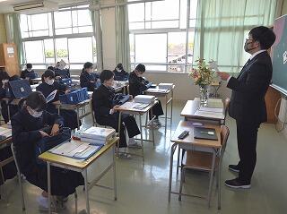 令和4年9月2日(金)5・6校時に県立高校説明会を実施しました。日向高等学校、日向工業高等学校、富島高等学校、門川高等学校の4校の先生方に来ていただき、各会場にて詳しく説明をしていただきました。全校生徒を4つのグループの少人数に分け、各会場をローテーションで回りました。参加していただいた保護者の皆様、ありがとうございました。今後の進路決定の参考にしていただければ幸いです。