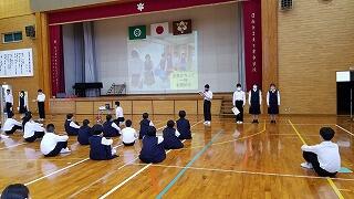 るというねらいで活動しています。その後、中学3年生が入学後も困らないように6年生に礼法指導を行い