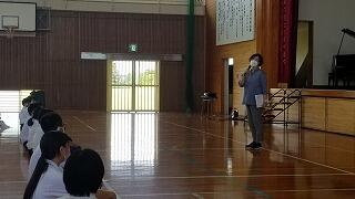 7月21日(木)1学期最後の日を迎えました。大清掃の後、体育館にて終業式を行いました。各学年代表の1学期の反省と校長先生のお話、校歌斉唱を行いました。それから学習面、保健面、生活面について、担当の先生からお話がありました。式の後には2年生がクイズやパフォーマンスをおりまぜながら面白おかしく「修学旅行の報告会」を行ってくれました。最後に、教頭先生より「命について考える日」と題して講話をしていただきました。