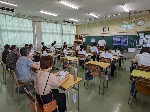 8月30日(火)に視聴覚室(旧コンピュータ室)において「令和5年度新入生保護者説明会」を行いました。校長あいさつ、学校生活スライドショー、授業参観を行い、教務主任による教育課程説明等、生徒指導主事による学校の決まり等について説明がありました。終了後は、自由に部活動見学を行いました。来年4月の入学を楽しみにしています。
