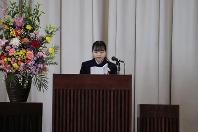 答辞では、3年生の海野結愛さんが、1,2年生の頃を振り返り周りに迷惑をかける場面も多かったけれど、3年生になり、少しずつ成長した自分たちになったことを涙ながらに述べてくれました。その上で、3年生はすべてが最後の行事となる中、「一人はみんなのために、みんなは一人のために」といったことが、自然と振る舞えるようになり、いつしか集団からチームへと変わっていくことができたと話してくれました。特に、受験期においては様々な動揺に襲われる中、仲間のことを考えながら受験に立ち向かうことができたとも述べてくれました。