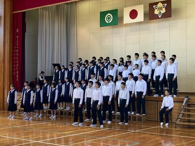 ろん、土谷教頭先生も音楽専門であり、全校練習や複数学年の練習に熱を入れて指導して頂きました。その結果、合唱の質が飛躍的に向上し、子どもたちの合唱への取組も変わってきたように感じます。この学習発表会では、まず、学年毎にに合唱を披露し、最後に全校生徒で合唱を披露しました。学年毎の合唱は、学年の個性が表れ、全校合唱では迫力のある素晴らしい合唱を披露することができました。