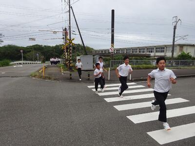 校長は、今回の避難訓練への取り組みや姿勢が素晴らしいと称賛しつつ、実際の場面では訓練とは違う想定外が起きる可能性があるとの話をしました。訓練は一つの目安であって、その時と場合によっては、違う判断をそれぞれがしなければなりません。いつも、学校からの避難とは限りませんので、自宅はもちろん、初めて訪れた場所で起きるかもしれません。どのような場所でも、「もし、ここで津波が来たら?」と自分に問いかけ、安全な場所を確認する習慣をつけておくことも大事です。また、余裕のある人は地域の高齢者や体の不自由な方をサポートする必要もあります。などの講話をしました。