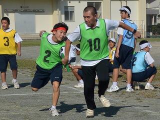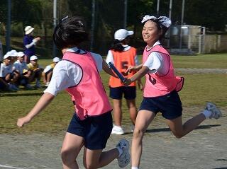 が少ないので男性職員も助っ人で参加しました。校長先生も走りましたよ。閉会行事も大変盛り上がりました。
