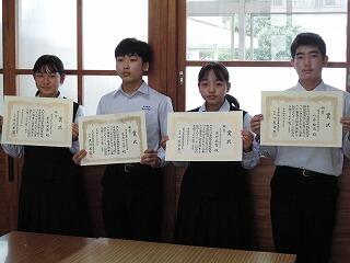 11月30日(水)昼休み時間に校長室にて「税についての作文」の表彰式を行いました。延岡税務署から署長の小沢百々子様と総務課の篠原成一様が来校し、署長から直接、賞状が手渡されました。入賞者は下記のとおりです。