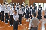 6月10日(木)朝の集会にて「第72回日向地区中学校総合体育大会」推戴式を行いました。各部活動キャプテン