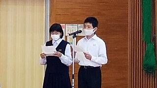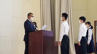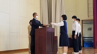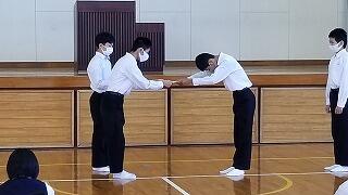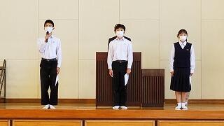 学校長から新生徒会長へ任命状授与 新生徒会三役のあいさつ