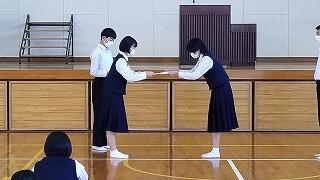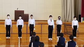 10月29日(金)5校時に生徒会役員の退任式および新生徒会役員の任命式を行いました。始めに前生徒会三役