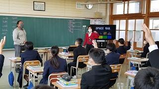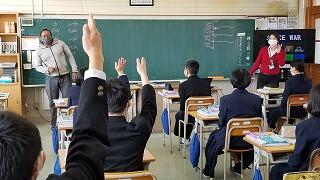 した。写真は2年生の授業のようすです。ちょうど英語科の授業で学習した「現在完了形 have(has)+過去分