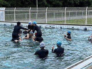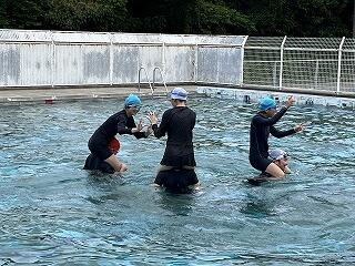 6月7日(火)体育の授業で「プール開き」がありました。本年度、初めてのプールで3年生が最初の授業を行いました。まずは「水に慣れる!」をねらいとして楽しい授業が行われていました。