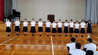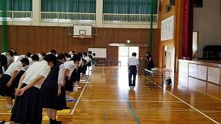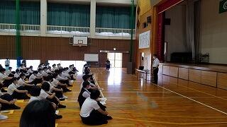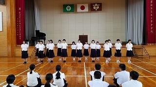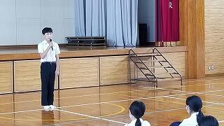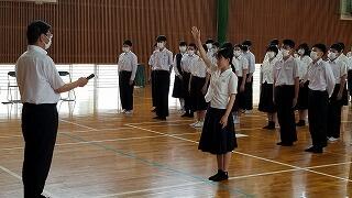 6月10日(金)6校時に第73回日向地区中学校総合体育大会「推戴式」を行いました。各部活動キャプテンによる決意表明、生徒会代表生徒からの「激励の言葉」、代表して女子ソフトテニス部キャプテンによる「選手宣誓」が元気よく行われました。