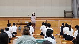 6月19日(日)に第2回参観日を行いました。2校時目に参観授業を実施しました。その後、保護者と全校生徒を体育館に集め教育講演会(SNS講話)を行いました。講師には、広島県より富士通エフサス サービスビジネス本部 西日本第三サービス統括部 平野 春香 様にお越しいただき、「令和のSNSとの付き合い方(仮)」と題して講話をしていただきました。SNSの利点と合わせて、気をつけなければいけないことを、TikTok、Instagram、Twitter、Line等、具体的にかつ詳しく、分かりやすくお話していただきました。今の美々津中学校の実態もすごくわかり、びっくりすることもありました。今日の講話の内容が、各家庭でのSNSに関するルール作りの参考となることを期待いたします。