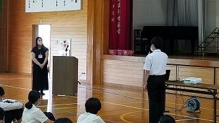 6月24日(金)先日行われた「美々津町並みスケッチ大会」の表彰を行いました。各学年から優秀賞が2名ずつ選ばれ、『美々津の歴史的町並みを守る会』より副賞として図書カードが送られました。