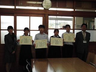 11月30日(水)昼休み時間に校長室にて「税についての作文」の表彰式を行いました。延岡税務署から署長の小沢百々子様と総務課の篠原成一様が来校し、署長から直接、賞状が手渡されました。入賞者は下記のとおりです。