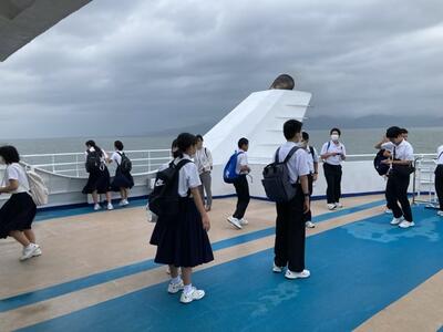 生徒たちは、みんな元気です。今から、熊本港に向けて出発します。