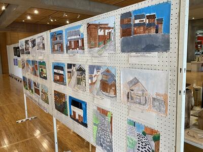 町並を描くスケッチ大会を行いました。そこでの作品を64点応募しまし