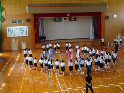 音楽 本校1年生 母校美々津小へ盆踊りの指導