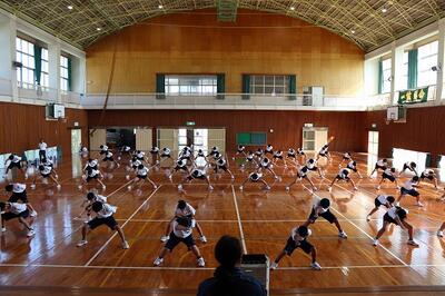 本校では、体育大会で全校生徒による「美中ソーラン」を踊る