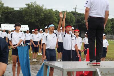 間と共に!~」の下、河野澪奈実行委員長が18日間の練習を引っ張ってきました。生憎の天候となしましたが、生徒たちは、徒走・リレー・団技・応援等に誰一人手を抜くことなく、一生懸命取り組んでくれました。徒走やリレーでは、転倒するアクシデントもあり、練習の時とは違う結果となりましたが、最後まであきらめず走りぬく姿に感動させられました。