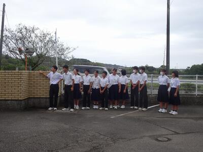 校長は、今回の避難訓練への取り組みや姿勢が素晴らしいと称賛しつつ、実際の場面では訓練とは違う想定外が起きる可能性があるとの話をしました。訓練は一つの目安であって、その時と場合によっては、違う判断をそれぞれがしなければなりません。いつも、学校からの避難とは限りませんので、自宅はもちろん、初めて訪れた場所で起きるかもしれません。どのような場所でも、「もし、ここで津波が来たら?」と自分に問いかけ、安全な場所を確認する習慣をつけておくことも大事です。また、余裕のある人は地域の高齢者や体の不自由な方をサポートする必要もあります。などの講話をしました。