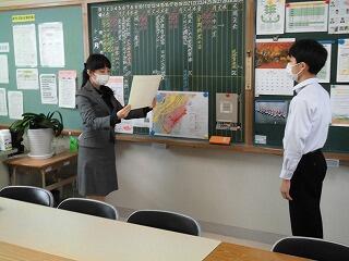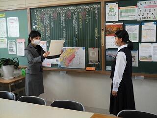 11月30日(水)昼休み時間に校長室にて「税についての作文」の表彰式を行いました。延岡税務署から署長の小沢百々子様と総務課の篠原成一様が来校し、署長から直接、賞状が手渡されました。入賞者は下記のとおりです。