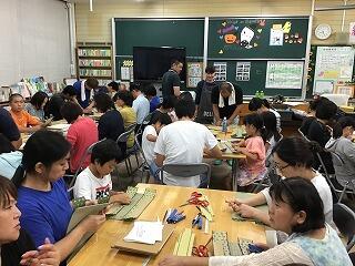 9月12日(水)の夜に美々津中学校の図書室において、美々津小学校主催の3校合同家庭教育学級『畳作り体験』を行いました。私も保護者のキャンセルが出たために、飛び入り的に参加させていただくことになりました。最初は、少し遠慮がちだったのですが、始まってみると私の「物作り魂」が沸々と湧いてくるのを感じました。途中からは、飛び入りであることも忘れ、周囲の保護者をよそに夢中になって作っている自分がいました。同じ班であった美々津中の保護者の皆様すどうもみませんでした。