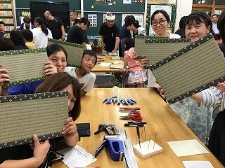 【 始めの挨拶 ~ 畳作りの様子 ~ 本校保護者の班の作品 ~ お礼の場面 】