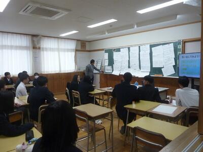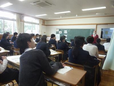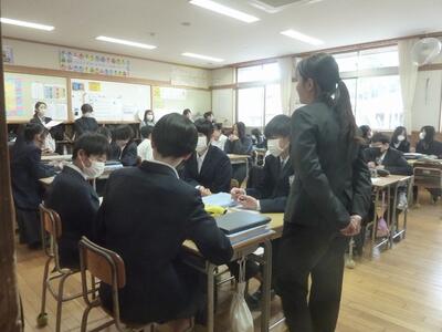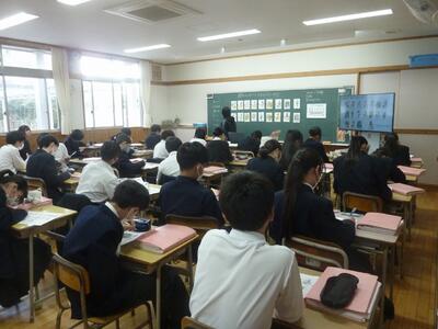 本日の6校時は、平和交流事業に関する報告会がありました。報告会の冒頭には生徒会長から挨拶があり、身近な話題として「クリスマスケーキの値段の高騰」に触れながら、世界情勢とのつながりについて語ってくれました。物価の変動は私たちの日常に直結しており、その背景には国際的な緊張や戦争の影響があることを改めて考えさせられます。生徒会長の言葉は、単なる季節の話題にとどまらず、平和の大切さを私たち一人ひとりに問いかけるものでした。