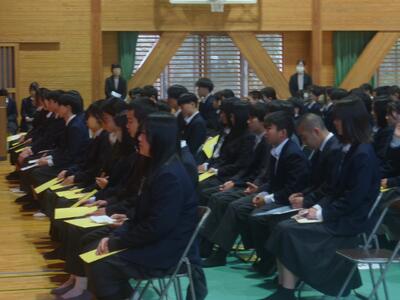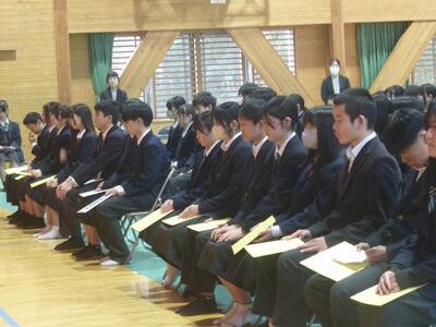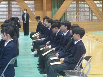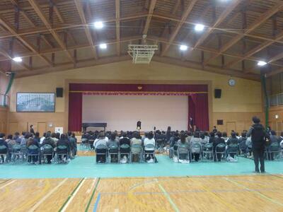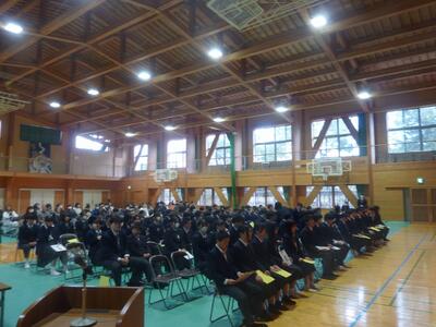 校長先生からも「特に緑風祭を頑張っていましたね。3年生に続いて、1、2年生も頑張っていきましょう。」といった言葉を頂きました。また、代表生徒からは、「3学期は次の学年の0学期なので、頑張りたいです。」「受験に向けて勉強を頑張っていきます。」といった、前向きなことを話してくれました。
