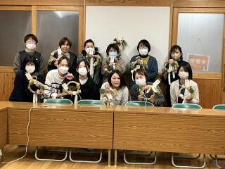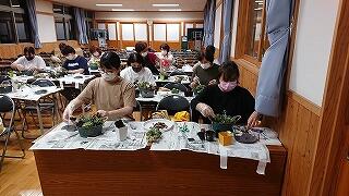 12月12日(木)、PTA家庭教育学級を開催し、タカハシ花店の高橋様に講師をお願いして「正月飾りづくり」を作りました。