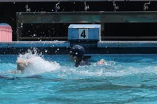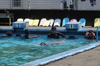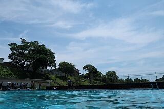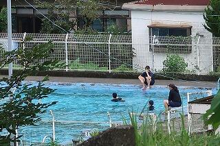 校舎の2階からプールを見ると水泳の授業中でした。水の中は気持ちよかったでしょうね。