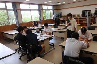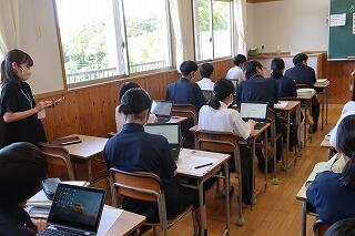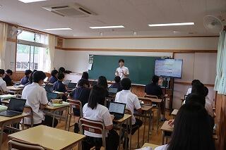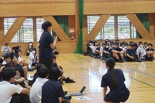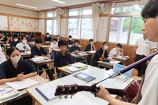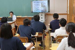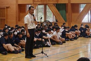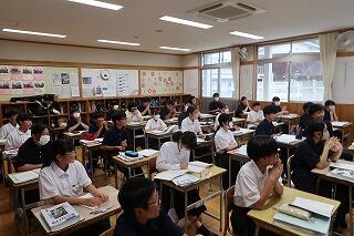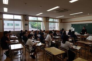 6月21日(金)、3年生は「高校説明会」を行い、3・4時間目は私立高校、5・6時間目は県立高校の先生にそれぞれお越しいただき、各学校・学科の特徴やこれから入試までに大切なことを説明していただきました。