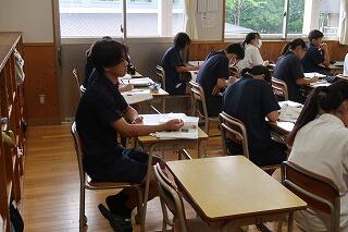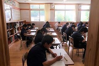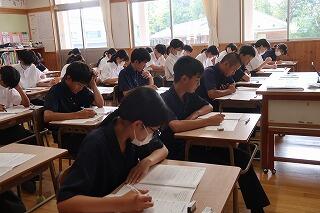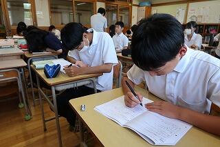 日向中では学期ごとに「定期テスト」を行います。1学期は今日と明日で5つの教科のテストを受けます。