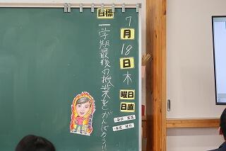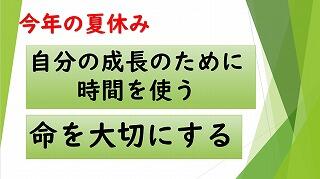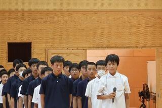1学期も残すところ明日、明後日の2日間となりました。昨日よりも日差しが強く、アブラゼミの音も大きくなってきました。今朝の「あいさつ運動」は1年1組でした。中学校に入学して初めて学級で行うあいさつ運動。7時30分から7時45分に生徒会活動として行っています。いつもより早い登校になった生徒もいたと思います。よく頑張りました。