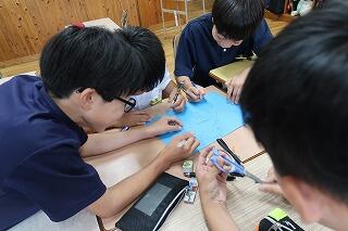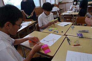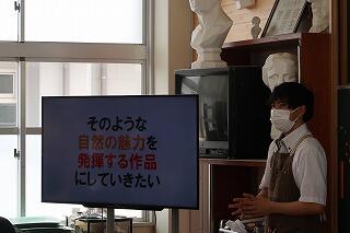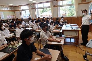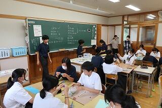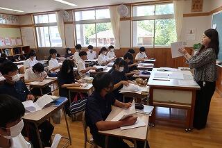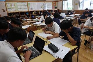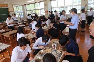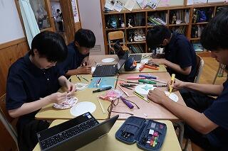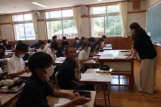 昨日(10月3日(木))、日向市内の図工・美術科主任の先生方の授業研究会があり、3年生の美術の授業を参観していただきました。