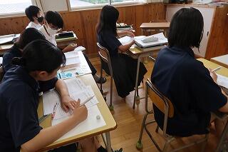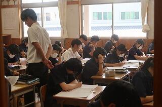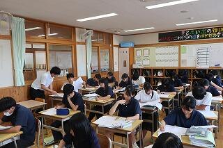 3年生は明日、明後日は実力テストです。その対策として問題集やプリントを使って問題を問いたり解き方を解説したりしている授業もありました。