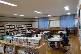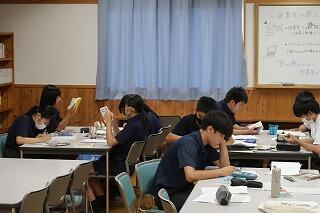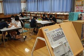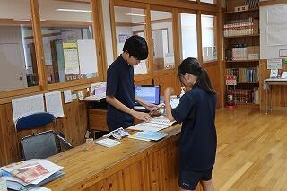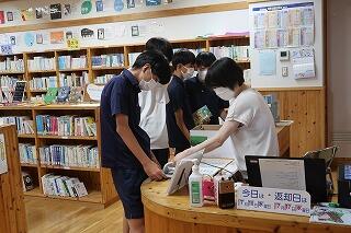 【国語】図書室で夏休み中の本の貸出を行い、手続きが終わった生徒はそのまま本を読んでいました。