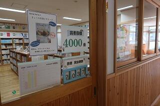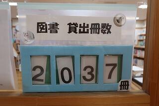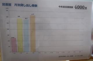 図書館の掲示物です。1学期の内に年間貸出目標冊数の半分を超えました。