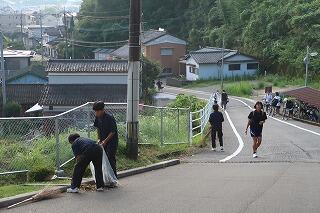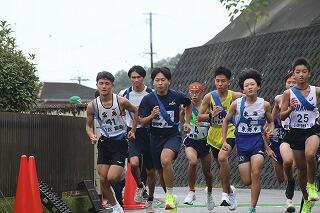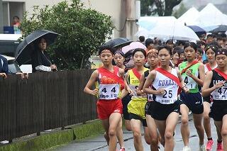 昨日(10月15日(火))、門川勤労者体育センター周回コースを会場として日向・東臼杵・延岡・西臼杵の「4地区合同駅伝大会」が開催されました。日向中からは、陸上部とバスケットボール部、サッカー部の生徒で編成する男女各1チームが出場し、女子は2km5区間、男子は3km6区間でレースは行われました。試合開始直前や男子6区の時間帯には雨が強く降る天気でしたが、これまでの練習を生かし、全員で襷をつなぎました。