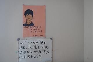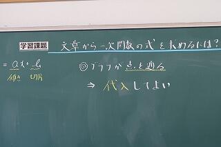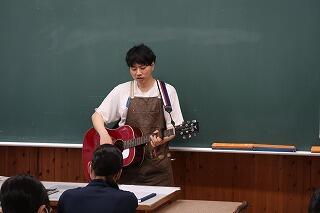 1年生の教室の前で美術科担当の先生がギターをもっていました。「この時間は数学の授業だったはず・・・。」と思って教室に向かうと時間割どおり数学の授業でした。1年生は「式の計算」の単元で「文字式を使った計算」について勉強しています。教室では、式を解くときの「文字式の約束」を、生徒が知っている歌に歌詞をつけて覚えるための歌が披露されていました。今週は定期テストです。この歌が役に立ち、計算ができるだろうと期待しています。
